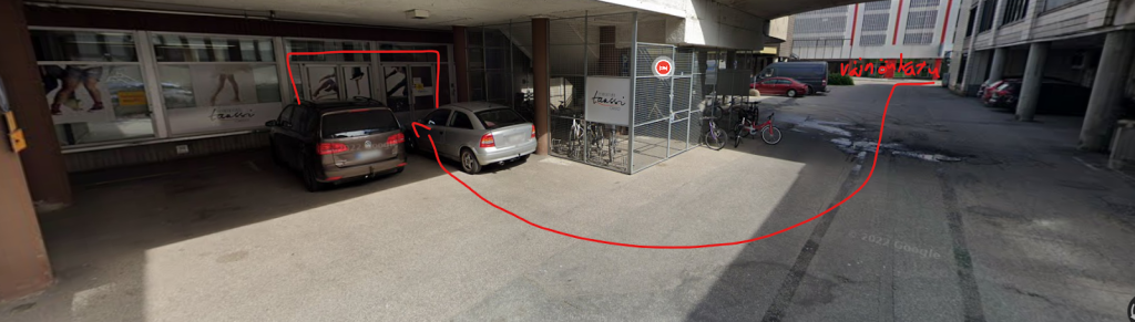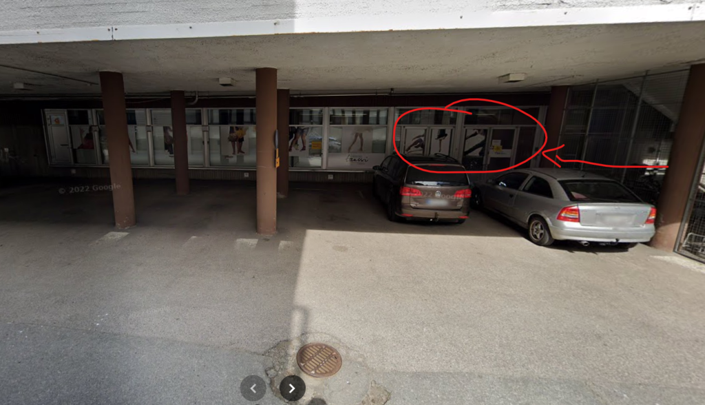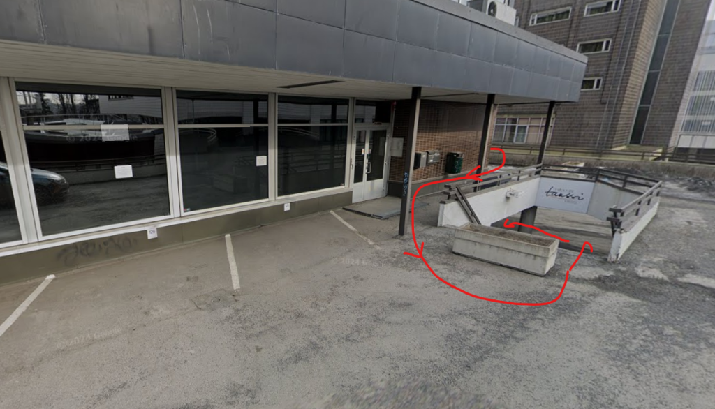 Huomaa, että Googlemapsiin “Jyväskylän Tanssiopisto” -hakusanojen tai katuosoitteen syöttäminen antavat oikean korttelin, mutta väärälle puolelle rakennusta ja ylemmälle katutasolle.